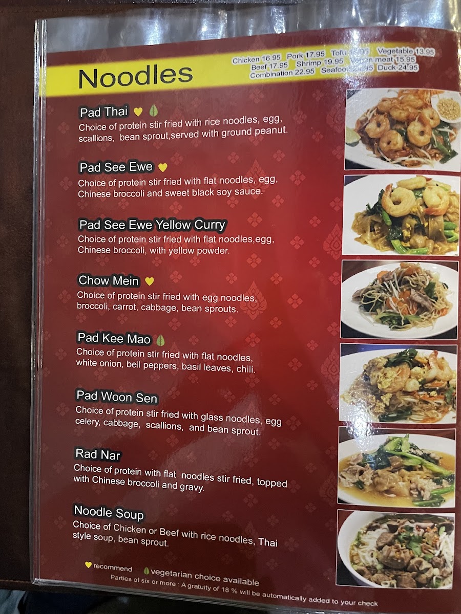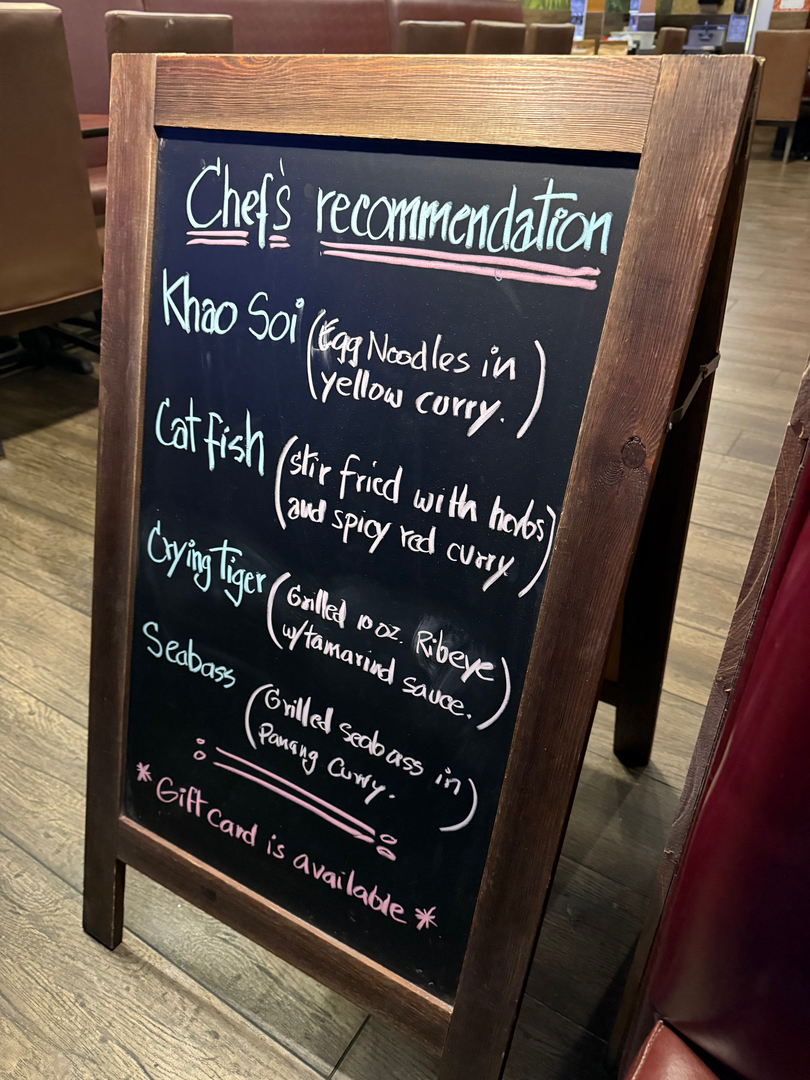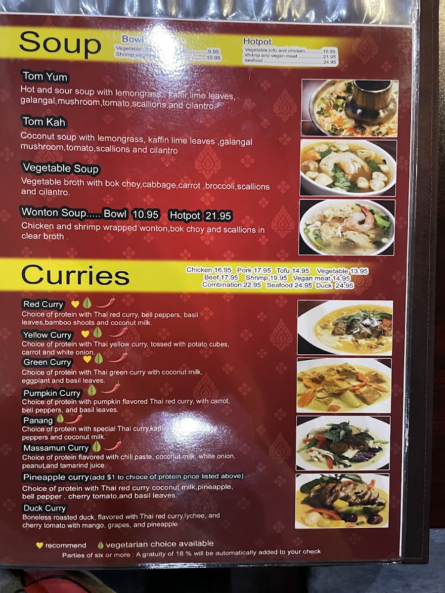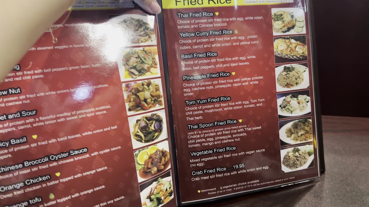 However, the must-try dishes don’t stop there. The Green Curry, made with your choice of meat cooked in rich coconut milk and fragrant basil, is a comforting dish that warms the soul. If you are in the mood for something crispy, the Orange Chicken offers succulent deep-fried chicken drizzled with a sweet and tangy orange sauce for $16.95. For those who appreciate a touch of spice, the Kao Soi has been raved about by customers, transporting you straight to Chiang Mai with its authentic flavors and generous portions.
